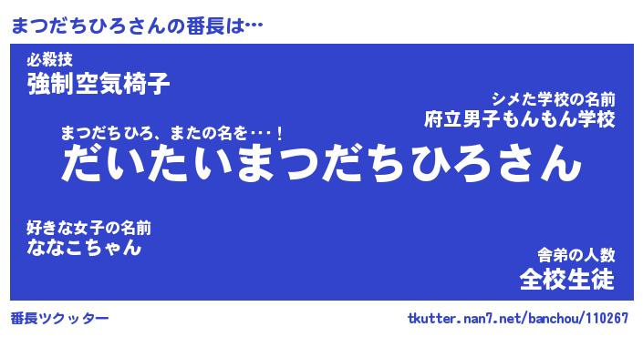 | 肩書あだ名 | 『まつだちひろ店長』『まつだちひろ団長』 |