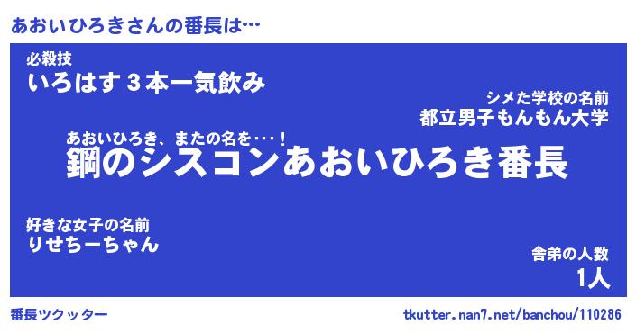 | 伝説のあだ名 | 『封印されしスナイパーあおいひろき』 |