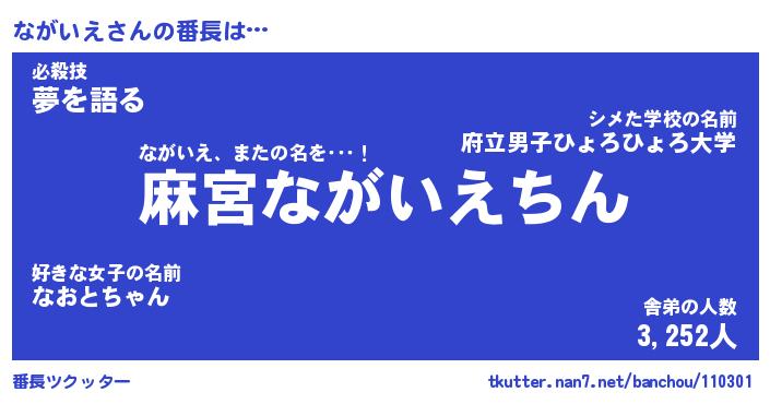 | 意味不明あだ名 | 『ペロリンながいえ』『永久保存ながいえ』 |