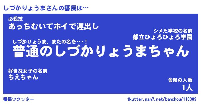 | 胡散臭い通販商品みたいなあだ名 | 『モテモテ間違いなし霊験あらたかなお札…その名も「しづかりょうま」』 |