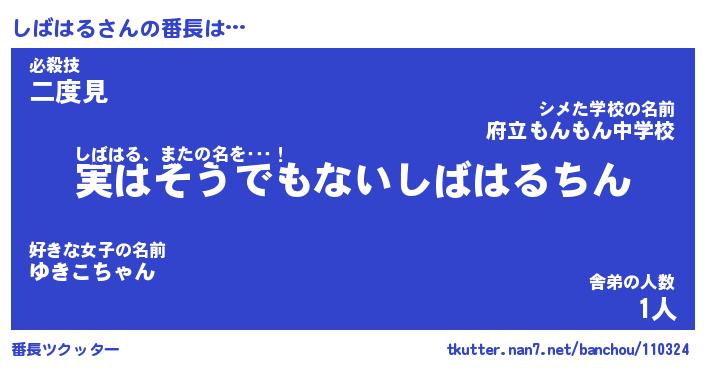 | ヘコむあだ名 | 『しばにー』『酢こんぶ』『しばを』 |