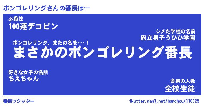 | ポケモン風あだ名 | 『ボンチュウ』『ボンゴダネ』 |