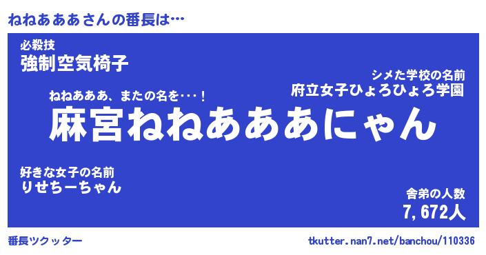 | 2回繰り返すあだ名 | 『ねねねね』『ねねねね』『ぬれぬれ』 |