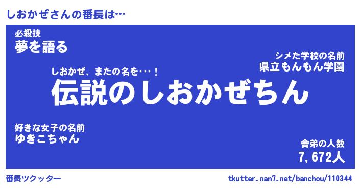 | 意味不明あだ名 | 『ペロリンしおかぜ』『永久保存しおかぜ』 |