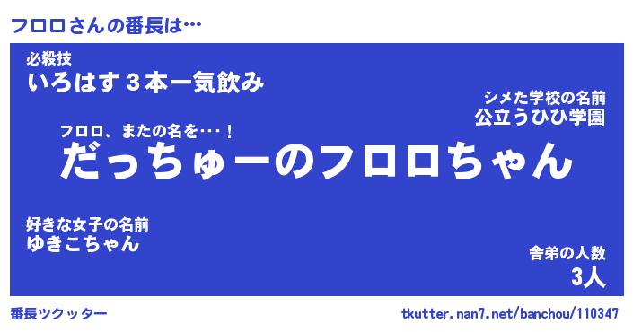 | 意味不明あだ名 | 『ペロリンフロロ』『フロロフォーエバー』 |