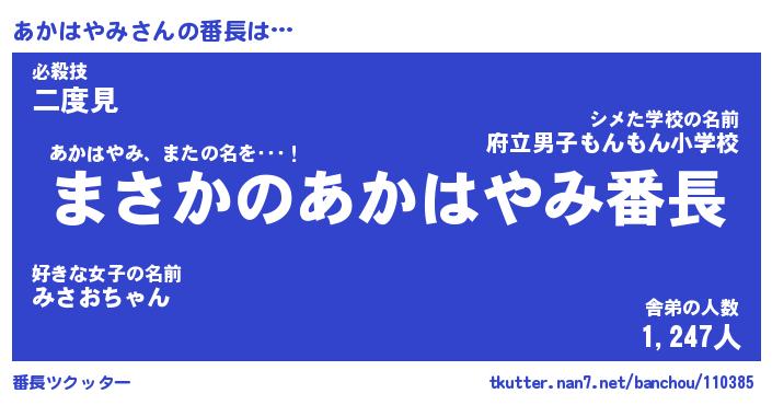 | 肩書あだ名 | 『あかはやみCEO』『あかはやみ国家主席』 |