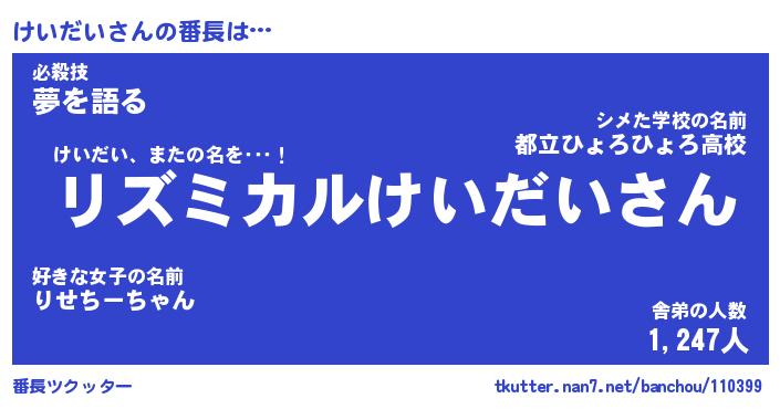 | 胡散臭い通販商品みたいなあだ名 | 『必ず成功する水晶球…その名も「けいだい」』 |