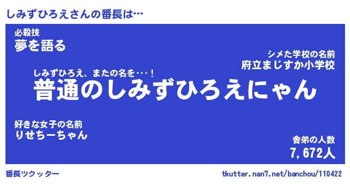 | 肩書あだ名 | 『しみずひろえ社長』『しみずひろえ班長』 |