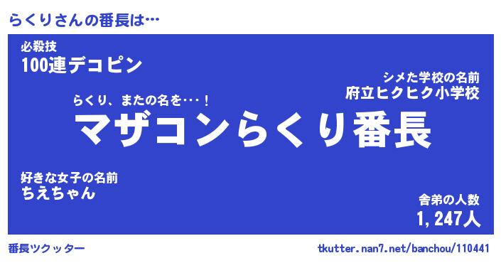 | ヒーロー風カッコイイあだ名 | 『スーパーラクリ』『ウルトラらくりマン』 |