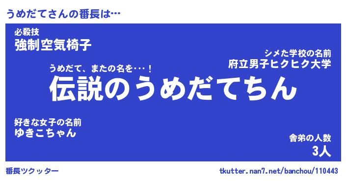 | ファンタジー風あだ名 | 『ウメフェル』『エターナルウメダテー』 |