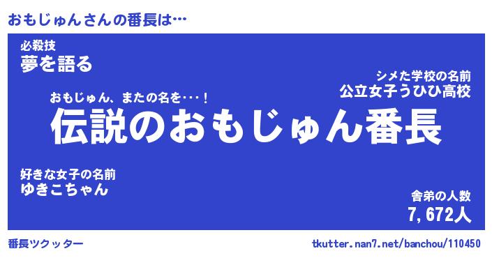 | 男性向けラノベタイトル風あだ名 | 『おもじゅんの憂鬱』 |