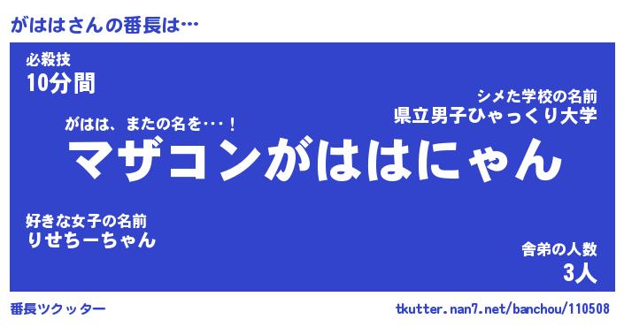 | 2回繰り返すあだ名 | 『がはがは』『ががはは』『なあなあ』 |