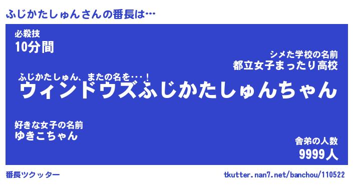 | 伝説のあだ名 | 『伝説のスナイパーふじかたしゅん』 |