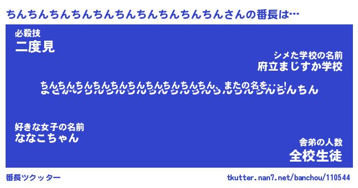 | 男性向けラノベタイトル風あだ名 | 『ちんちんちんちんちんちんちんちんちんちんの憂鬱』 |