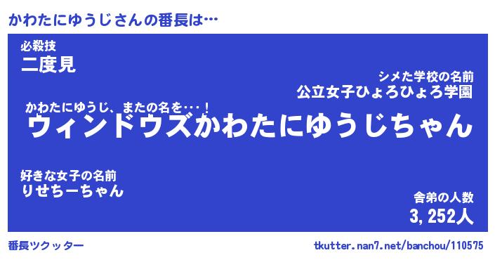 | 男性向けラノベタイトル風あだ名 | 『かわたにゆうじの憂鬱』 |