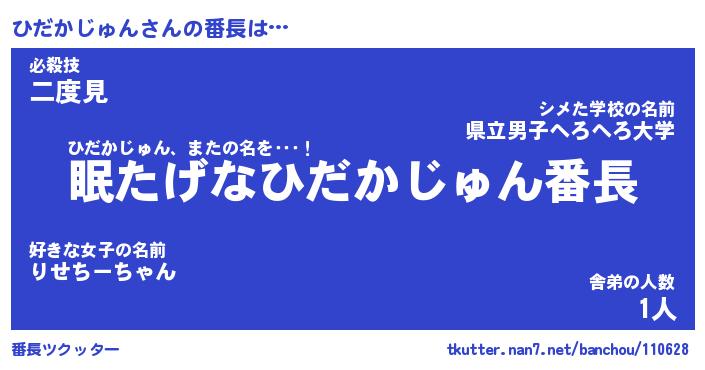 | 伝説のあだ名 | 『封印されしスナイパーひだかじゅん』 |