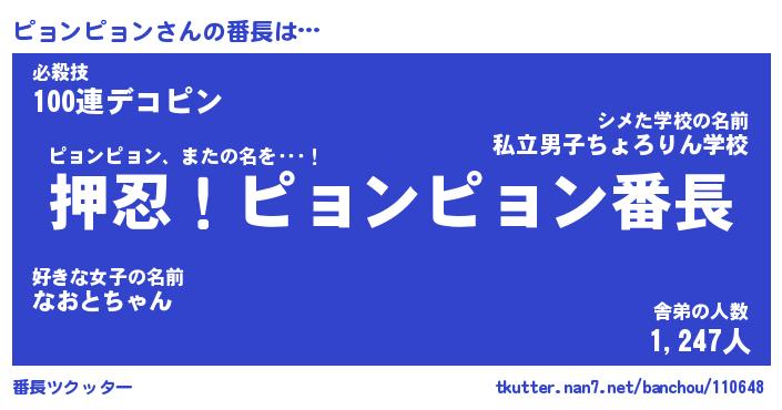 | ポケモン風あだ名 | 『ピョチュウ』『ピョンダネ』 |