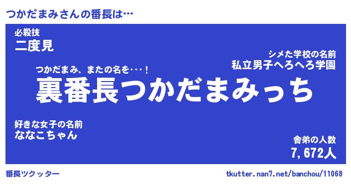 | 肩書あだ名 | 『つかだまみ御曹司』『つかだまみ班長』 |
