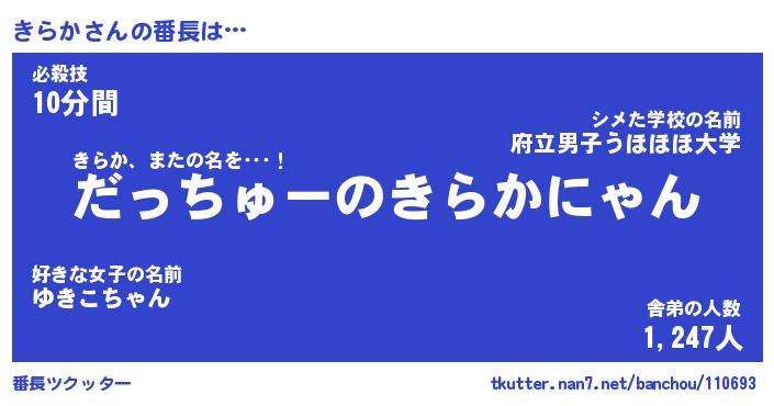 | 意味不明あだ名 | 『ペロリンきらか』『きらかフォーエバー』 |