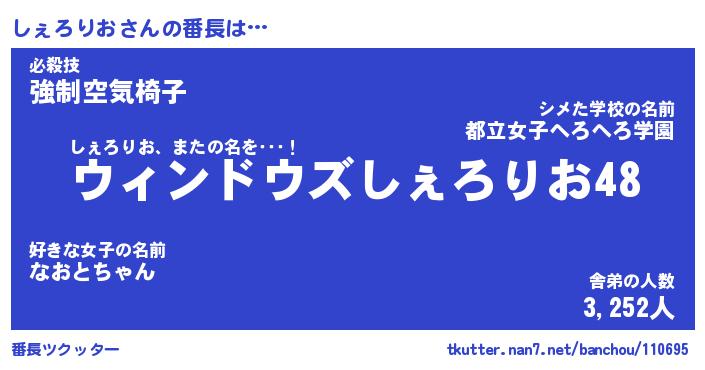 | 伝説のあだ名 | 『伝説のスナイパーしぇろりお』 |