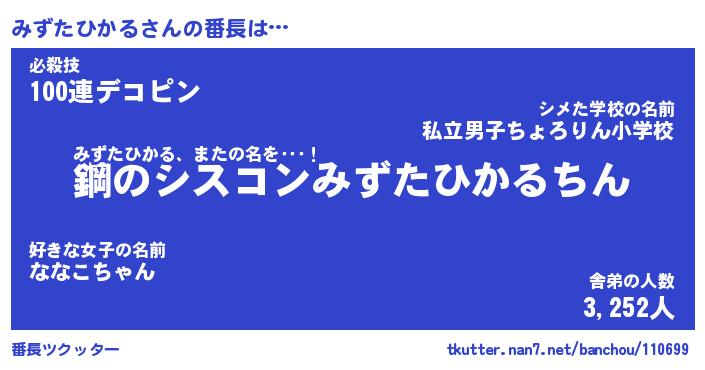 | ヘコむあだ名 | 『みずにー』『つくし』『みず太郎』 |