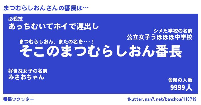| 男性向けラノベタイトル風あだ名 | 『まつむらしおんの憂鬱』 |