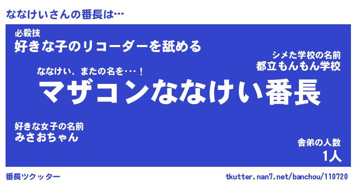 | ヘコむあだ名 | 『ななふぇ~』『酢こんぶ』 |