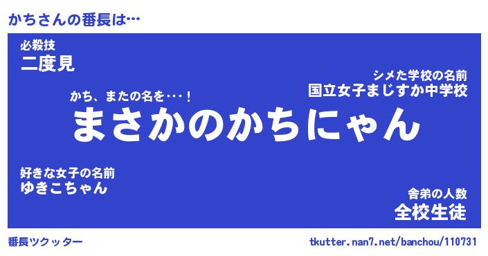 | 男性向けラノベタイトル風あだ名 | 『かちの憂鬱』 |