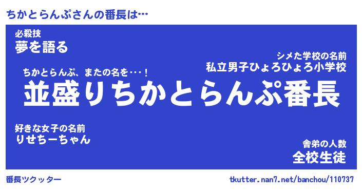 | 男性向けラノベタイトル風あだ名 | 『ちかとらんぷの憂鬱』 |