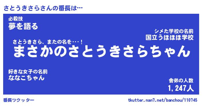 | 猫の名前『さとうきさらにゃん』性別『♀』 |