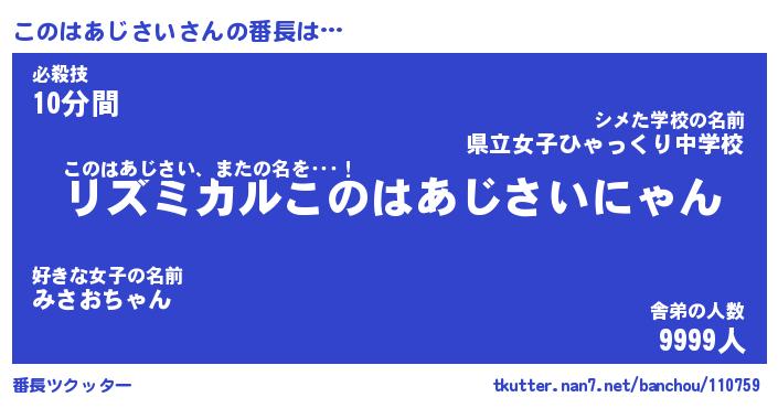| 伝説のあだ名 | 『伝説のスナイパーこのはあじさい』 |