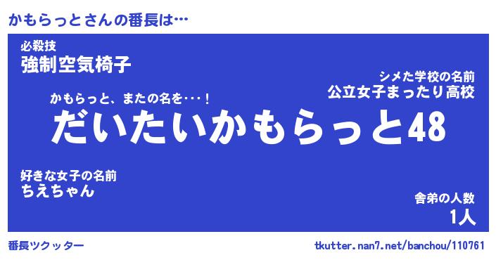| 肩書あだ名 | 『かもらっと社長』『かもらっと国家主席』 |