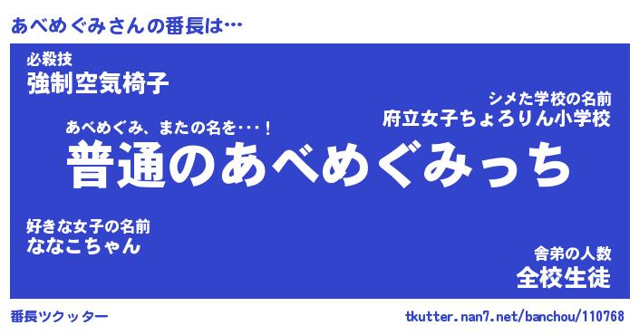 | ヒーロー風カッコイイあだ名 | 『スーパーアベメグミ』『暗黒騎士アベ』 |