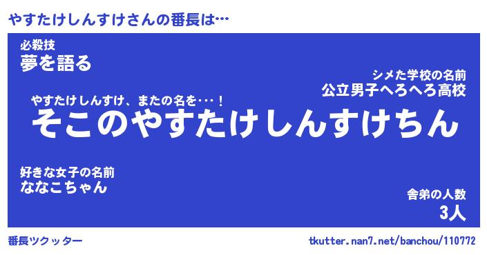 | 意味不明あだ名 | 『ペロリンやすたけしんすけ』 |