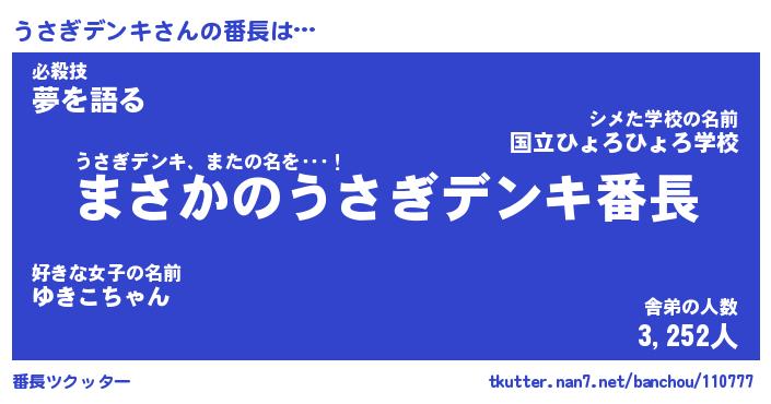 | ヒーロー風カッコイイあだ名 | 『スーパーウサギデンキ』『幻影騎士ウサ』 |