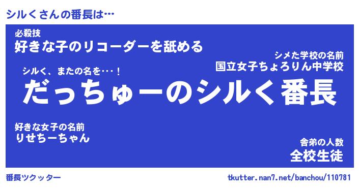 | ヒーロー風カッコイイあだ名 | 『スーパーシルク』『ウルトラシルくマン』 |