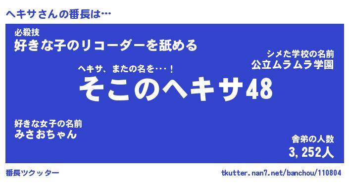 | ポケモン風あだ名 | 『ヘキチュウ』『ヘキサダネ』 |