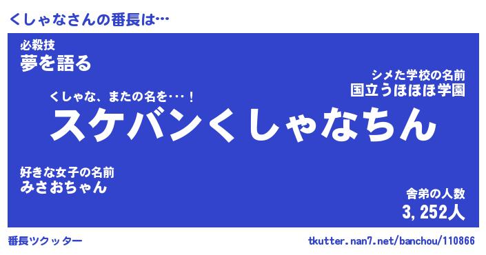 | 意味不明あだ名 | 『ペロリンくしゃな』『永久保存くしゃな』 |