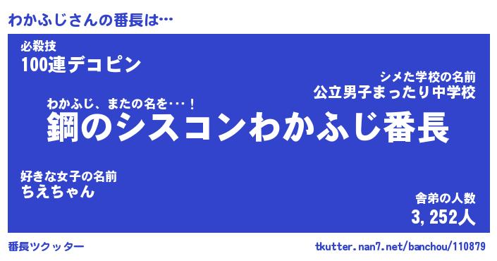 | 伝説のあだ名 | 『封印されしスナイパーわかふじ』 |