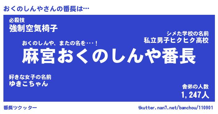 | ヒーロー風カッコイイあだ名 | 『スーパーオクノシンヤ』『暗黒騎士オク』 |