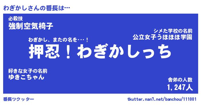 | 意味不明あだ名 | 『ペロリンわぎかし』『永久保存わぎかし』 |