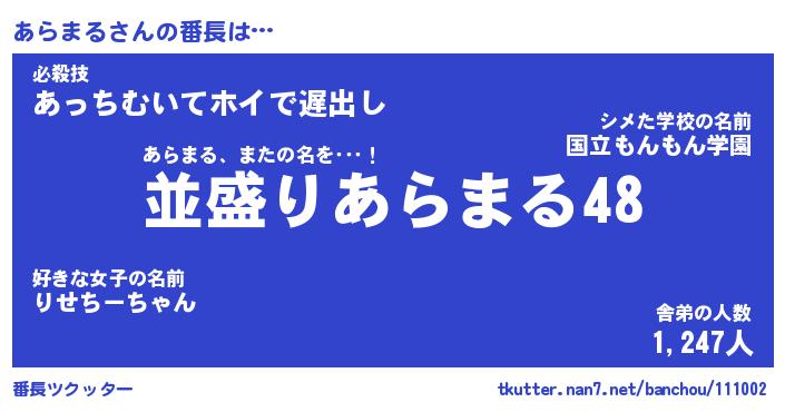 | 意味不明あだ名 | 『ペロリンあらまる』『永久保存あらまる』 |