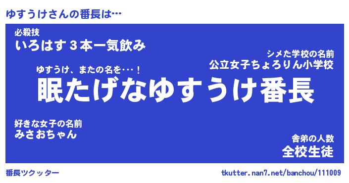 | ピコ太郎風あだ名 | 『ユコ四郎』『ピユ五郎』『ユス二郎』 |