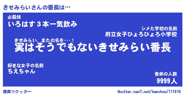 | 肩書あだ名 | 『きせみらい店長』『きせみらい総理大臣』 |