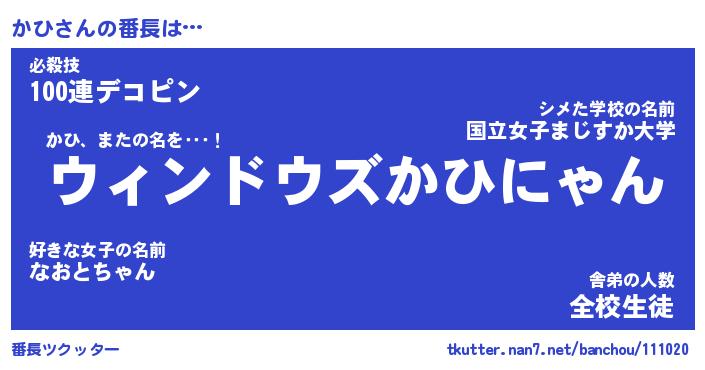 | ヘコむあだ名 | 『かひにー』『つくし』『かひ太郎』 |