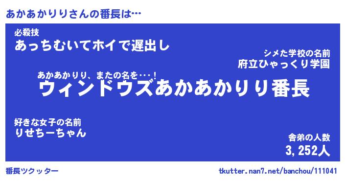 | 伝説のあだ名 | 『伝説のスナイパーあかあかりり』 |