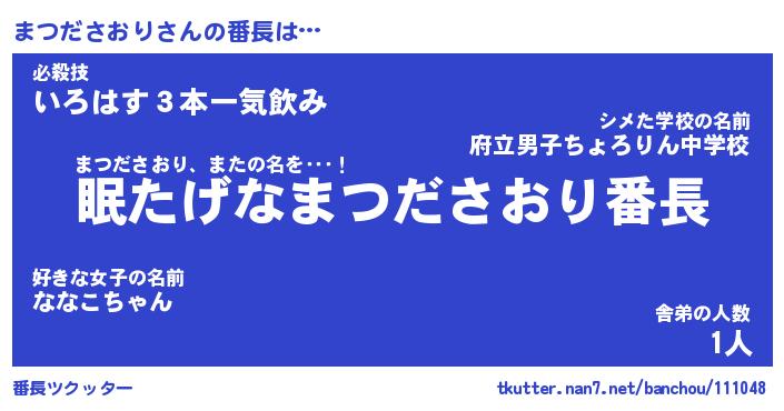 | 伝説のあだ名 | 『封印されしスナイパーまつださおり』 |