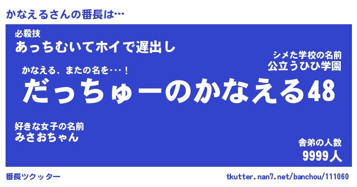 | 意味不明あだ名 | 『ペロリンかなえる』『永久保存かなえる』 |