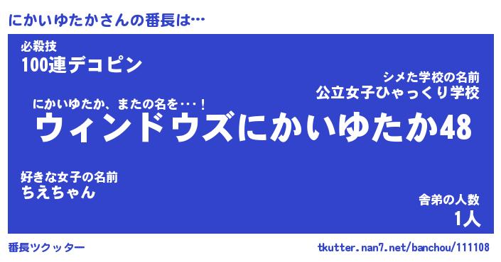 | ヒーロー風カッコイイあだ名 | 『スーパーニカイユタカ』『魔戒騎士ニカ』 |