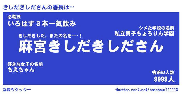 | ヘコむあだ名 | 『きしにー』『なまこ酢』『きしっ子』 |